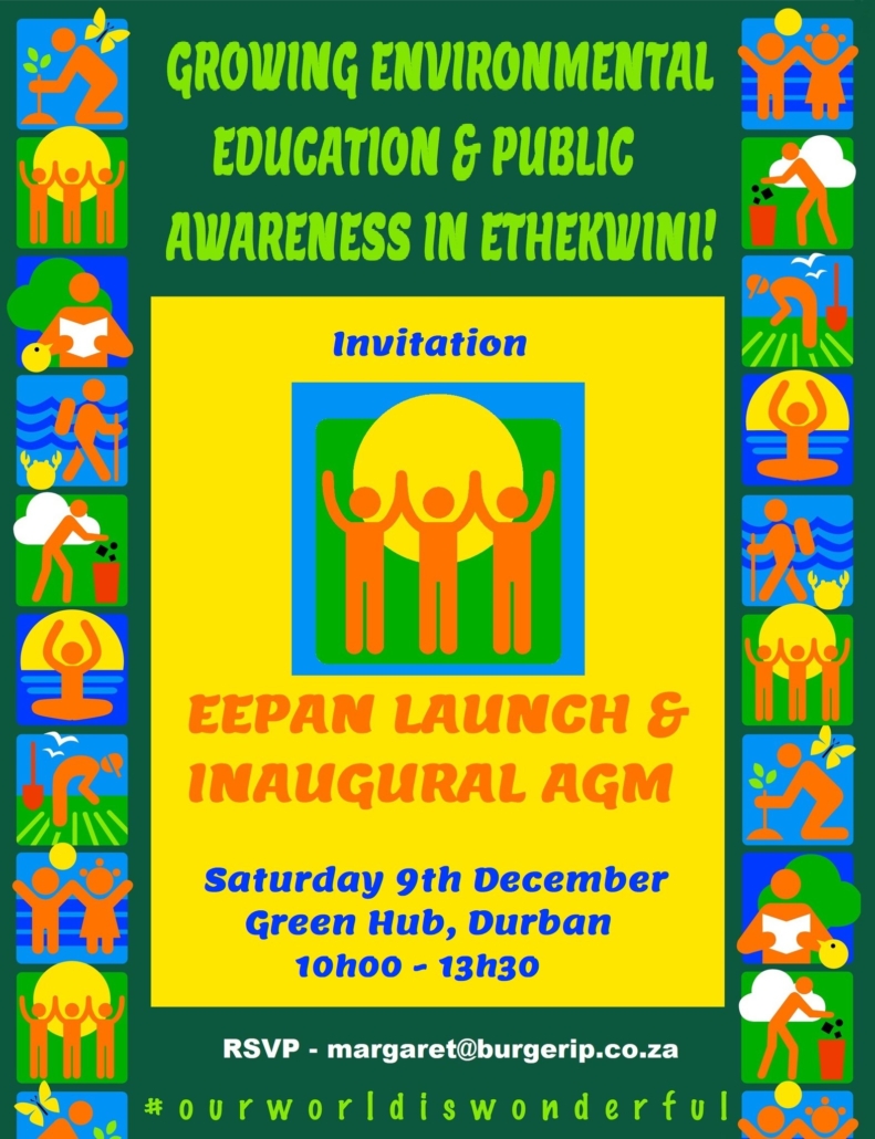 The launch of the Environmental Education & Public Awareness Network (EEPAN) for Durban, KwaZulu Natal, its first Annual General Meeting and clean-up took place on Saturday 9 December 2023, at the Green Hub, Blue Lagoon, Durban.