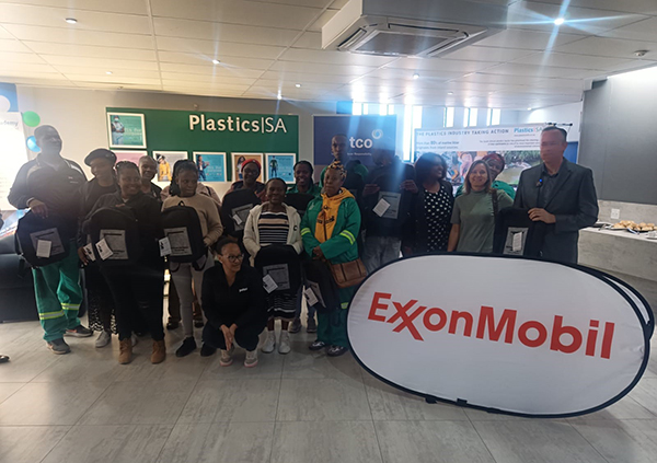 The training, a NQF Level 1 qualification, awards 26 credits and runs over five days, spread across a three-week period. In this pilot initiative, 20 learners in Johannesburg and 25 learners in KwaZulu-Natal were selected and sponsored to attend the programme, which took place concurrently in both regions. The training was made possible through the financial support of ExxonMobil, Polyco, Petco and Plastics SA and is a ground-breaking programme that is expected to expand globally. The South African pilot is just the beginning, with 2,000 informal waste sector workers set to benefit through a “train the trainer” approach.